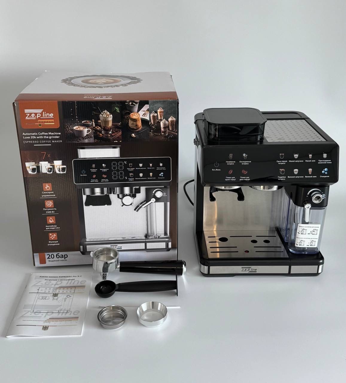 Автоматична Кавова машина Zepline ZP-6807 1500 Вт зі встроєною кавомолкою 20Bar