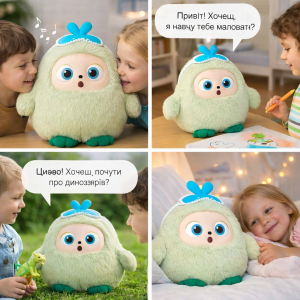 - Комплектація: AI плюшева іграшка × 1, перезаряджувана батарея × 1, USB кабель для зарядки × 1, інструкція користувача × 1, гарна подарункова упаковка × 1