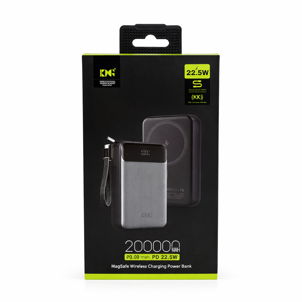 Повербанк KingPower WPG-207 магнітний (MagSafe) 20000 мАг, швидка зарядка 22,5 Вт, бездротова 15 Вт, чорний Повербанк