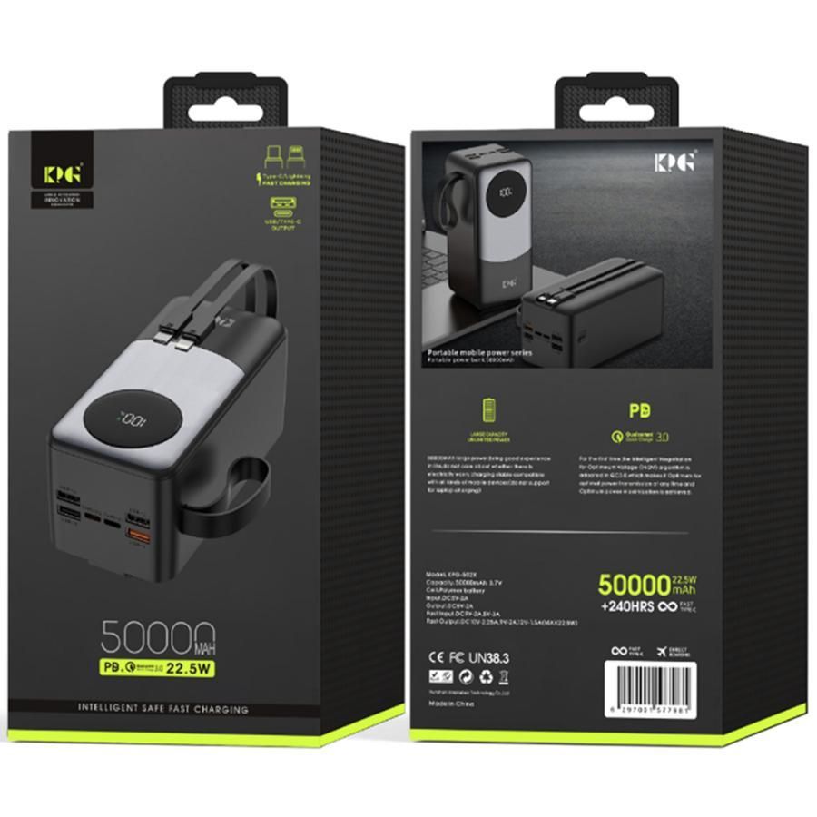 Зовнішній акумулятор (Power Bank) KPG KPG-502X 50000mAh 22.5W з LCD дисплеєм Повербанк